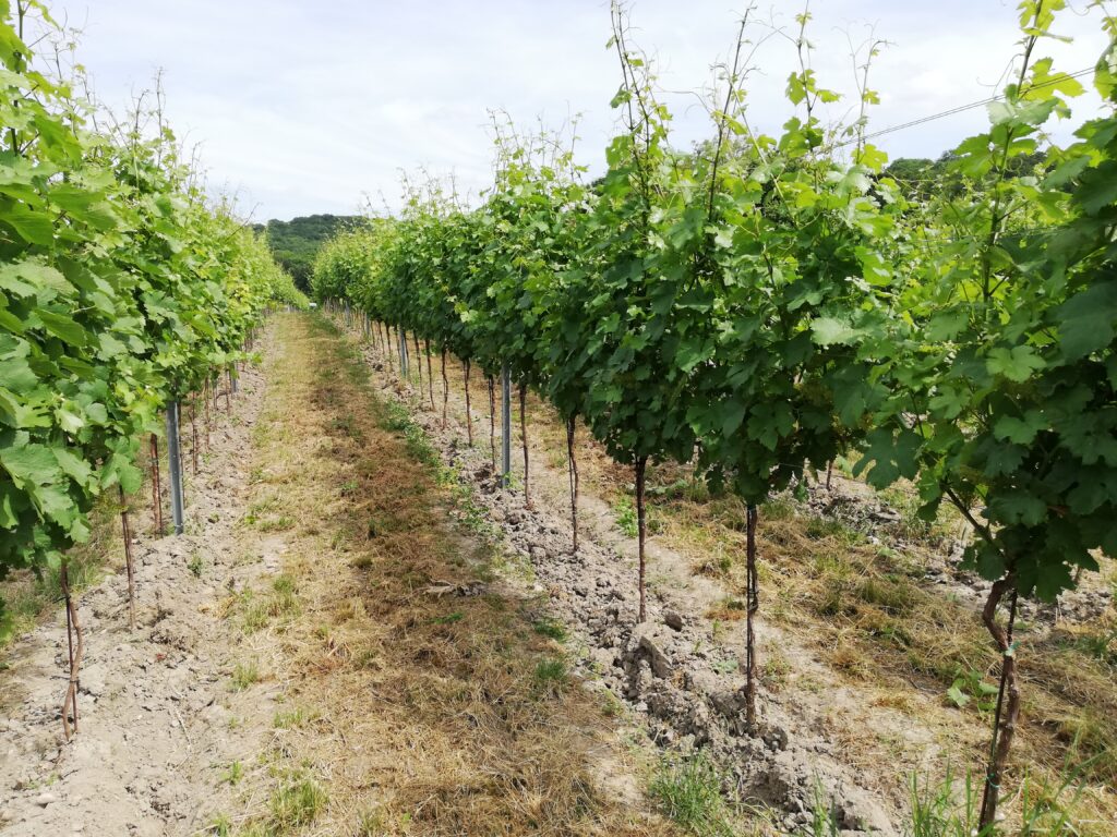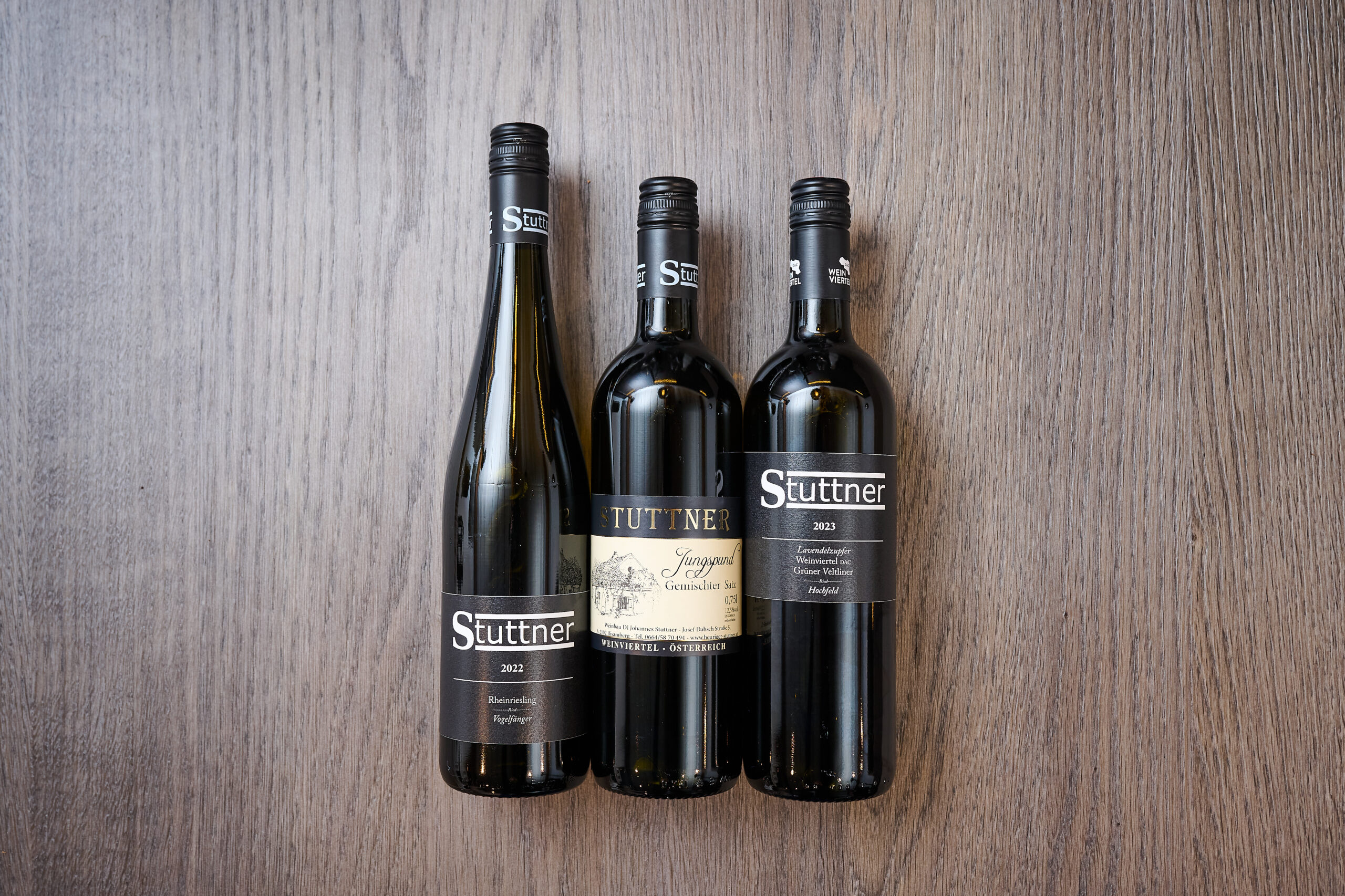 Johannes Stuttner sitzend im Weingarten mit dem Weinglas in der Hand.