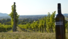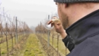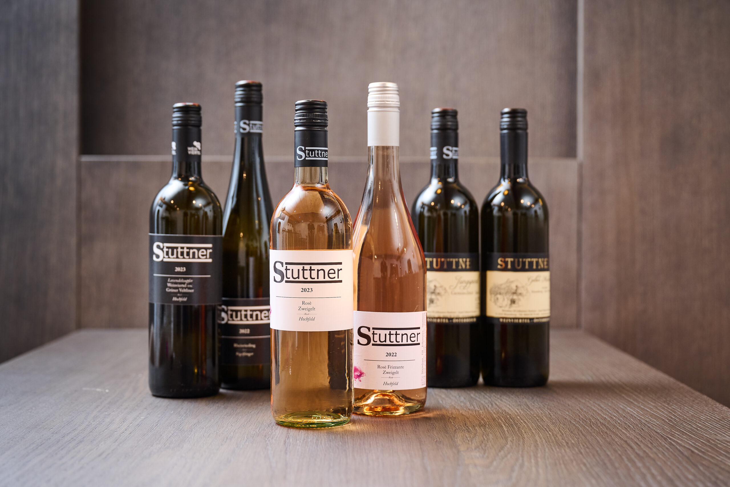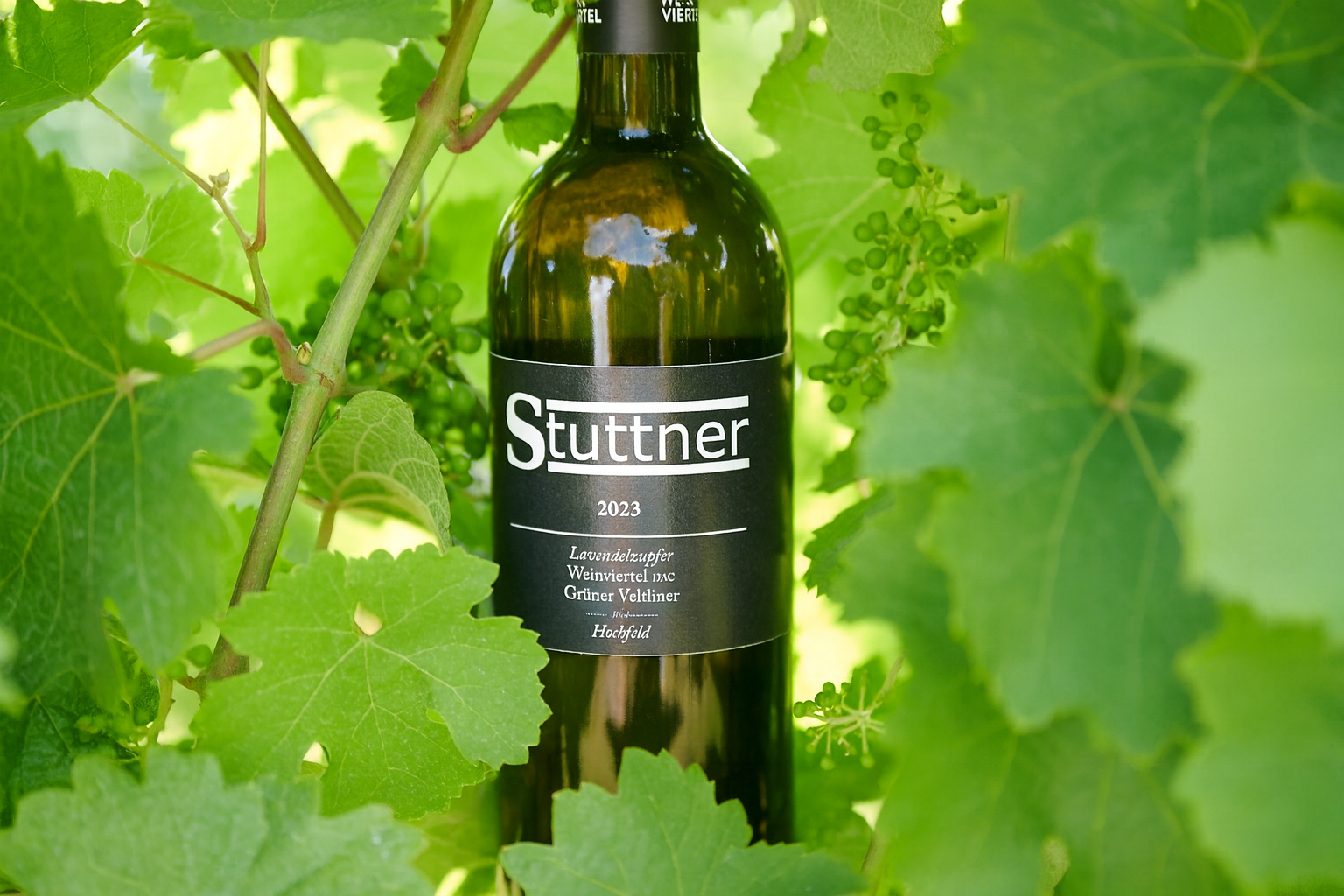 Johannes Stuttner sitzend im Weingarten mit dem Weinglas in der Hand.